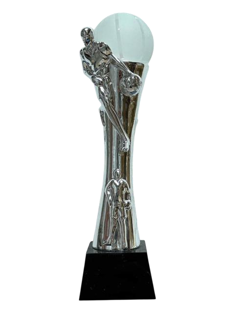 פסלון קריסטל + רזין של שחקן כדורסל מרים כדור, עיצוב מודרני ומרשים. גובה 28 ס"מ. זמין בגימור זהב (MCB1000G) או כסף (MCB1000S). כולל לוחית הקדשה מתכת.
