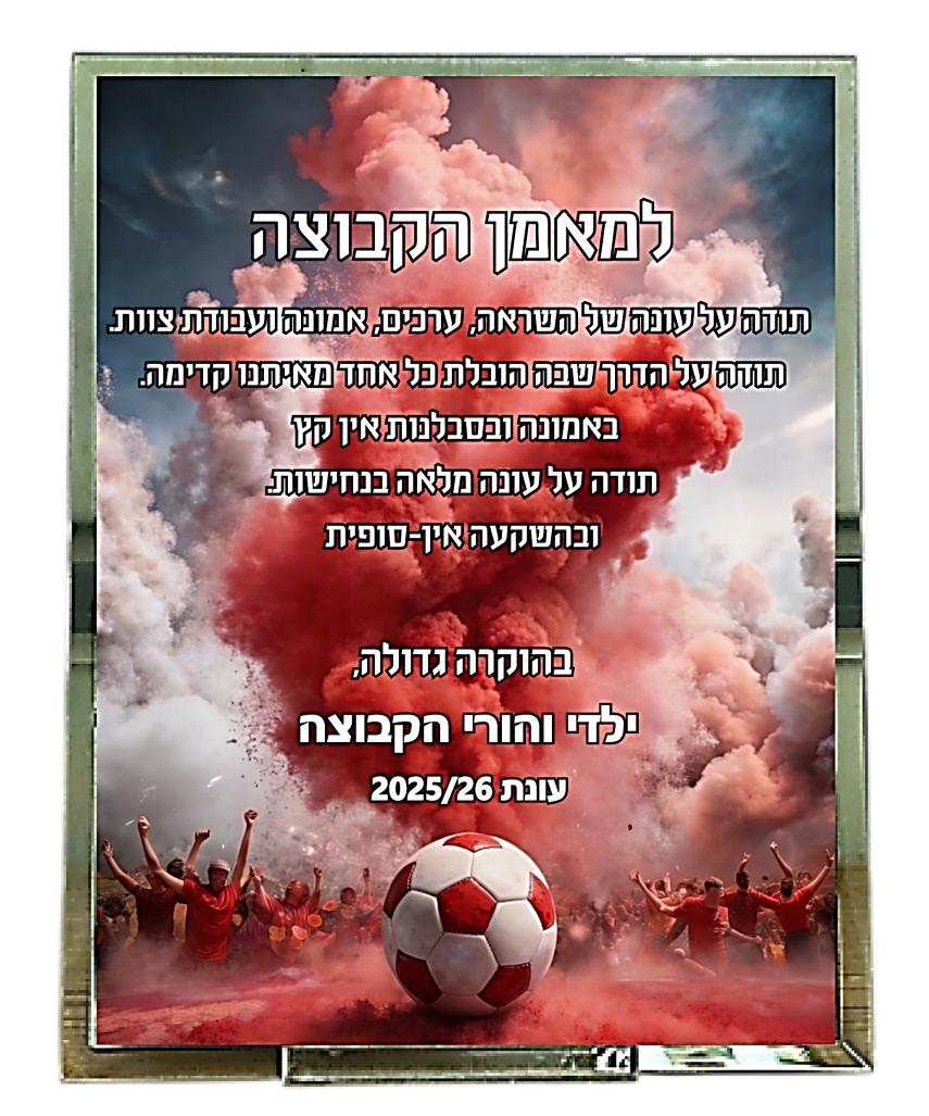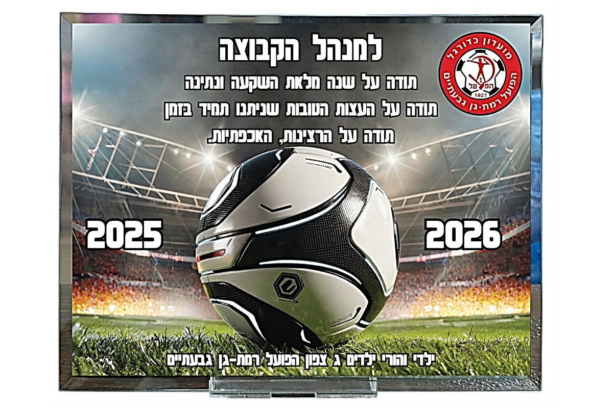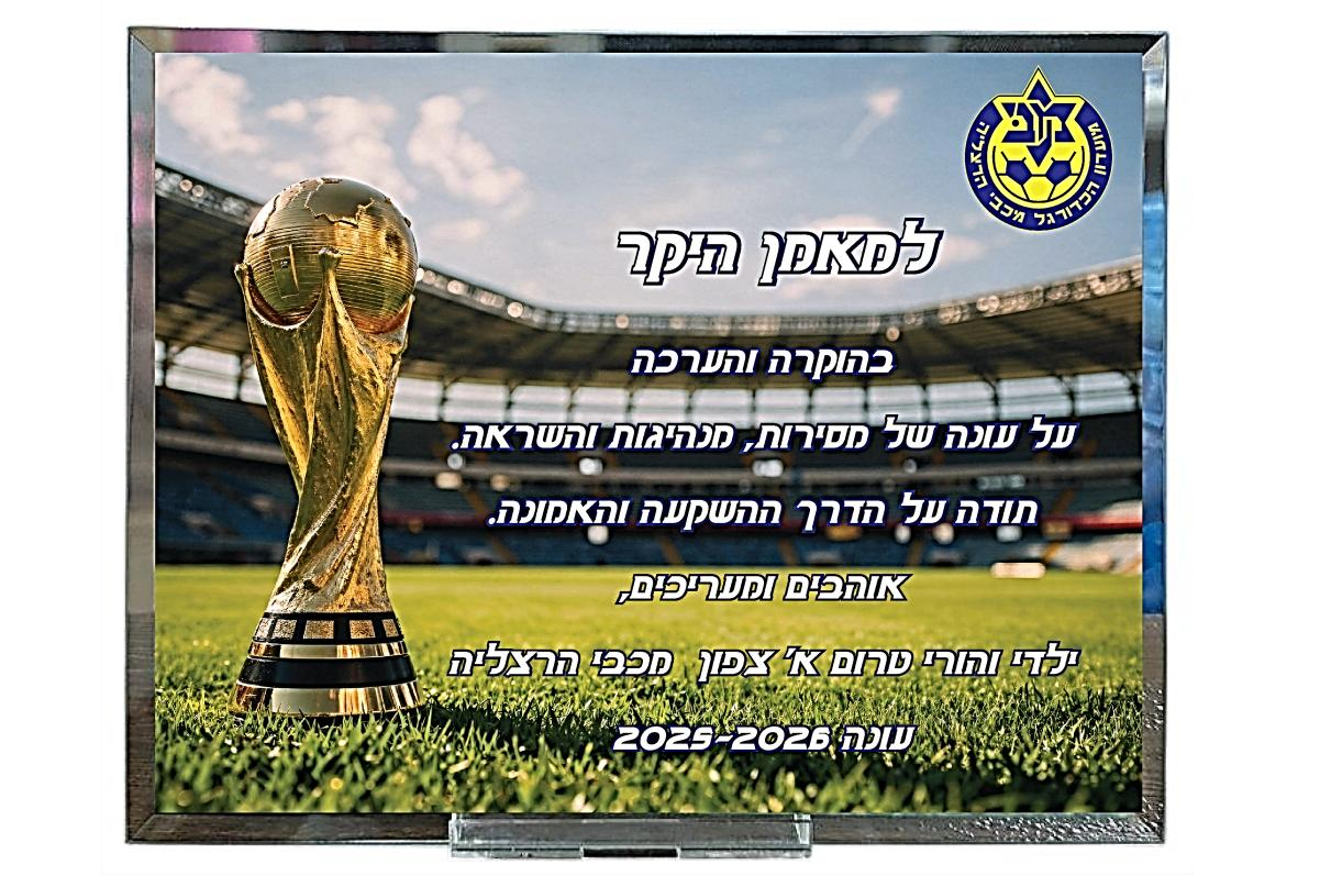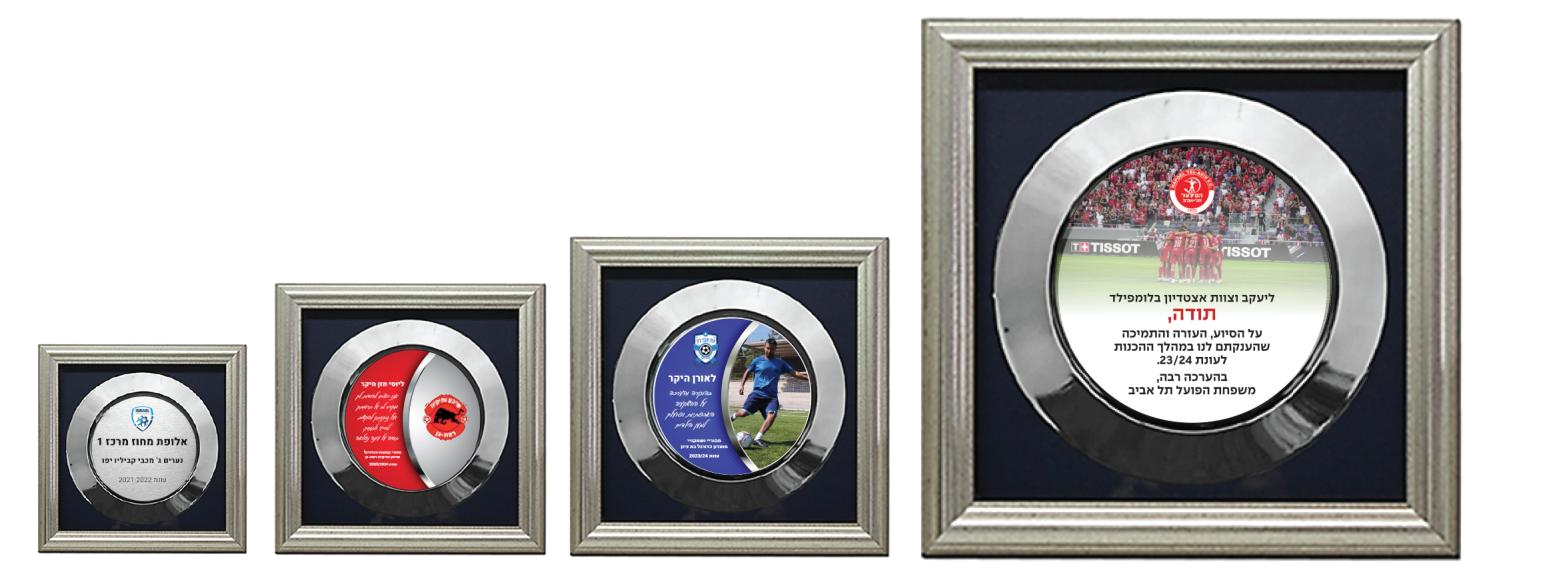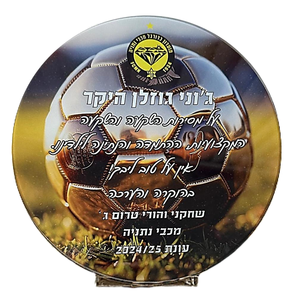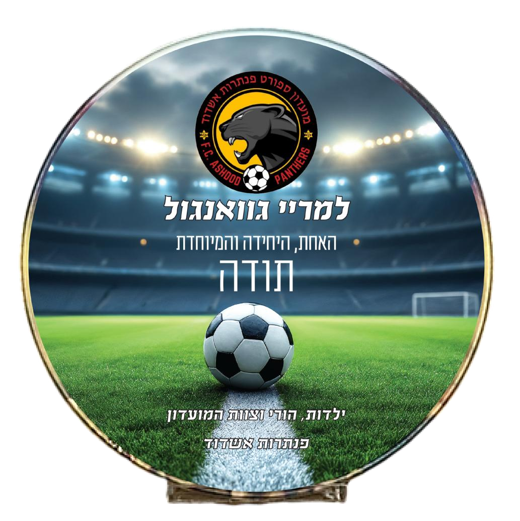 מדליית כדורגל מתכת במעמד — עם לוגו מועדון (MCF42/43)